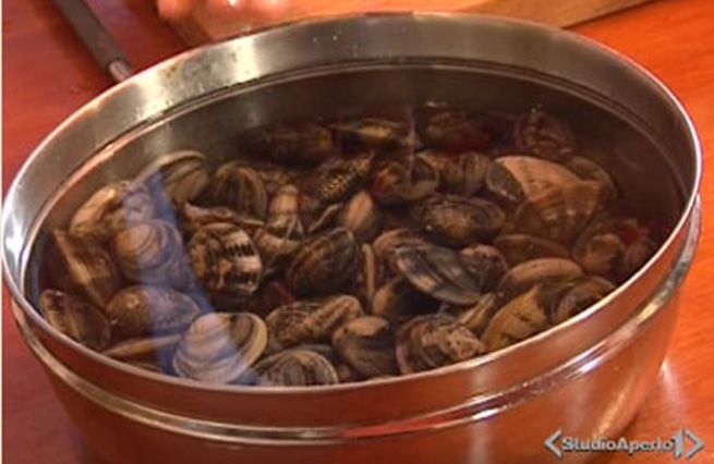 © Da video|Lasciar riposare in abbondante acqua salata le vongole per minimo 30 minuti