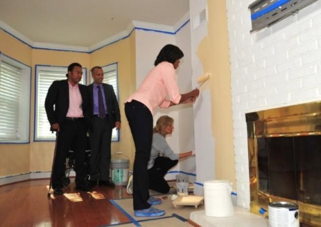 Michelle Obama prende secchio e pennello e si dà alla tinteggiatura. La first Lady versione "imbianchina" porta così il suo contributo alla ristrutturazione di una delle mille case sistemate dall'associazione "Rebuilding Together", organismo non profit che si occupa di aiutare i militari feriti in Afghanistan.