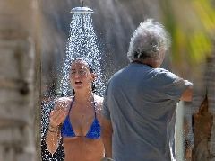 Continuano le vacanze di Lady Briatore in Kenya. La Gregoraci sta "svernando" a Malindi e ogni giorno sfoggia il suo fisico mozzafiato stretto in bikini succinti e supersexy. Eccola mentre si esibisce in una doccia a luci rosse.