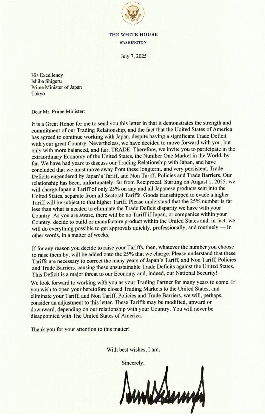 Mondo 1 di 2 2 di 2 © Truth © Truth Trump scrive al Giappone e alla Corea del Sud: dazi al 25% dal primo agosto 1 di 2 2 di 2 Avvia slideshow © Truth © Truth le foto Trump scrive al Giappone e alla Corea del Sud: dazi al 25% dal primo agosto Le due missive sono state postate dal presidente americano sul suo social Truth 07 lug 2025 - 18:52 2 foto dazi