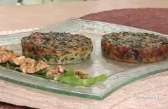 © Da video|Sbattere due uova con un pizzico di sale e 1/4 di bicchiere di latte, aggiungere poi le erbette, le noci e 70 g. di gorgonzola tagliato a pezzettini