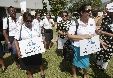 Ressa di fotografi e giornalisti per lo sbarco dei passeggeri della Costa Allegra a Mahè. All'aeroporto dell'isola sono pronti i tre charter messi a disposizione da Costa Crociere per i 251 passeggeri che hanno scelto di rientrare in patria. Gli altri 376 che proseguono la vacanza saranno invece smistati in resort di lusso dell'isola.