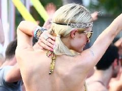 Curatissima nei dettagli come al solito, Paris Hilton si presenta a un party a Miami indossando un vestito larghissimo e fascetta hippy sulla fronte. Hippy solo in apparenza, a giudicare da bracciali d'oro, occhialoni superchic, e brillanti vari. Per non parlare dell'iphone, che Paris non molla un attimo per immortalarsi e twittare foto.