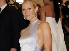 Sul red carpet del Metropolitan Museum di New York, in occasione del Gala del costume institute, Gwyneth Paltrow indossa un abito con vista laterale sul suo seno "poco contenuto". Grossi orecchini, capelli raccolti e schiena nuda esaltano ancora l'inconfondibile bellezza dell'attrice.