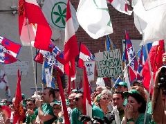 Bossi, Maroni e Tosi tra i leader leghisti oggi a Verona per la manifestazione contro l'Imu.
