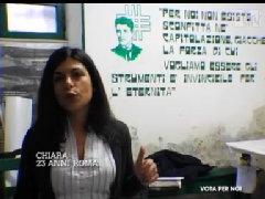 Chiara Colosimo è diventata oggi capogruppo del PdL alla Regione Lazio, dopo la bufera del caso Fiorito. Spigliata, tosta, determinata. Il fermo immagine risale a due anni fa, in occasione di una trasmissione di Mtv sui giovani e la politica. Il personaggio effigiato sul muro di fondo, con tanto di citazione, è Corneliu Zelea Codreanu, fondatore della Guardia di ferro, movimento nazista romena. A scovare le immagini il sito nomfup.wordpress.com.