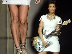 E' dolce con gli affetti più cari, si batte per gli animali e quando calca le passerelle mostra il suo lato rock, con tanto di borchie al collo e una chitarra elettrica in mano. Elisabetta Canalis, per lo stilista Philipp Plein, sfila con passo deciso indossando un abito bianco corto e un paio di scarpe aperte dal tacco vertiginoso.