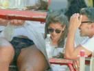 A pranzo in un clima di allegria e serenità Giulia Michelini ride e scherza con il figlio Cosimo e con un amico, apparentemente "di famiglia", Primo Reggiani, ex di Martina Stella. In un momento di euforia l'attrice si scompone un po', poi si riaggiusta la gonna, quanto basta per mettere in scena un siparietto molto piccante.