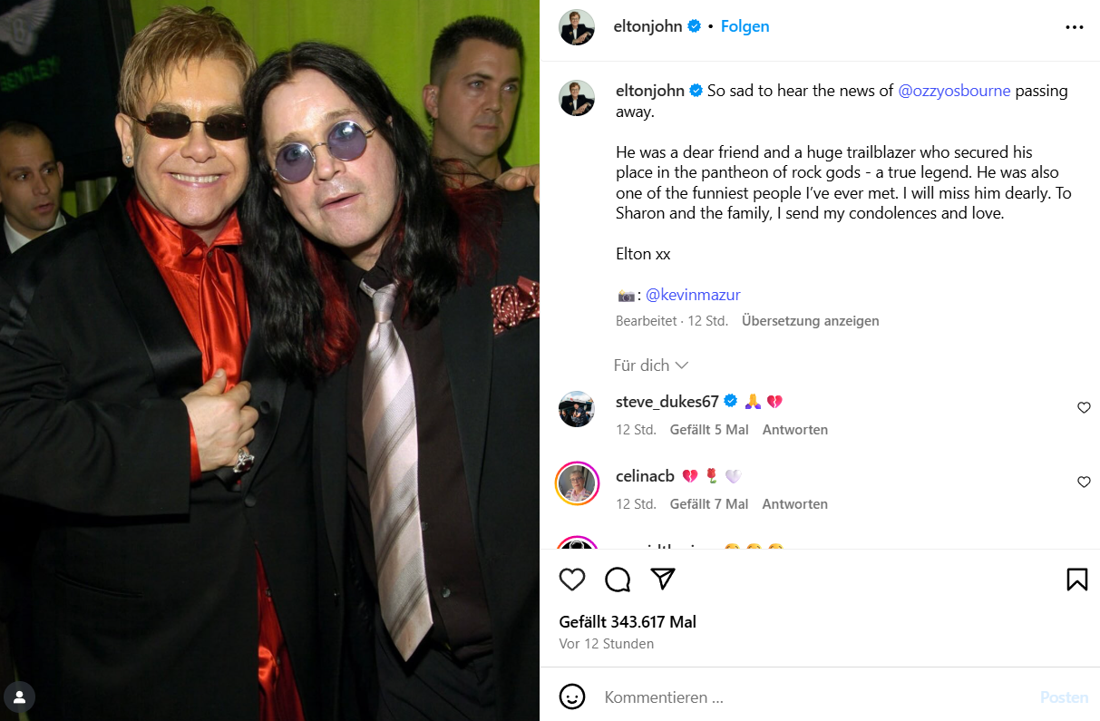 Ozzy Osbourne è morto, l'omaggio social del mondo della musica