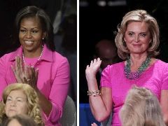 Hanno sfoggiato entrambe una mise rosa, della stessa identica tonalità, Michelle Obama e Ann Romney durante il secondo dibattito presidenziale. In prima fila ad assistere al confronto che ha segnato la riscossa di Obama nella corsa per la Casa Bianca, anche il governatore di New York, Andrew Cuomo.