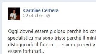 L'ultimo messaggio su Facebook di Carmine Cerbera, il docente precario morto suicida venerdì a Napoli. Oggi i colleghi lo ricordano con una manifestazione contro il precariato davanti al Miur.