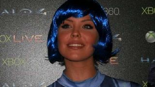 Caschetto blu elettrico, tutina elasticizzata che modella le forme perfette. Costanza Caracciolo per una sera è Cortana, l'eroina sexy del nuovo videogioco per Xbox "Halo 4".
