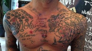 Contarli è impossibile ma i tattoo di Fabrizio Corona sono davvero tanti. Lui ne va fiero e pubblica su Facebook un primo piano del suo petto completamente coperto da scritte e disegni. Il volto del figlio Carlos in basso verso l'addome, il numero della cella dopo il suo primo arresto, il 106 e poi date, cuori infranti...