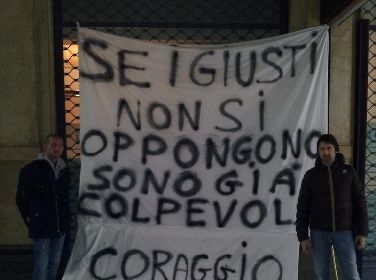 Nella galleria di via Negri di Milano dove si trova la sede del "Giornale" è stato esposto uno striscione sul quale è scritto "se i giusti non si oppongono sono già colpevoli". Lo striscione conclude con un incoraggiamento a Sallusti: "Coraggio direttore, sei un grande".