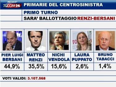 Primarie, il primo round va a Bersani