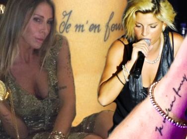 Emma Marrone e Guendalina Canessa “se ne infischiano”. Di cosa non si sa. Sarà una questione d'amore o altro, fatto sta che sia la ex gieffina, sia la cantante hanno lo stesso tatuaggio sul braccio con la scritta “Je m'en fous”. Per Emma l'incisione è recente, mentre la Canessa ne rivendica la paternità, anche se poi la stessa scritta è anche un marchio di abbigliamento e costumi molto in voga tra le vip.