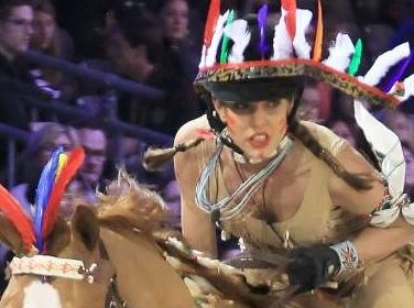 Con un rossetto rosso fuoco e un costume da indiana d'America, Charlotte Casiraghi lascia il pubblico del Gucci Paris Masters 2012 a bocca aperta: icona di stile e di bellezza, la principessina a cavallo offre un'immagine di sé diversa dal solito. Copricapo piumato, treccine laterali e collane esaltano ancora di più i tratti del suo luminoso viso.