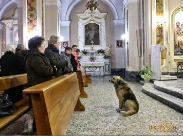 Tommy è un pastore tedesco di 12 anni ed è rimasto orfano della sua padrona da due mesi. Dal funerale della signora Maria Lochi, 57 anni, ha continuato ad andare a messa. Proprio come faceva ogni giorno insieme alla signora Maria. Tutti i giorni il cane si presenta sul sagrato della chiesa San Maria Assunta a San Donaci, provincia di Brindisi. Il parroco non ha avuto cuore di caccialo e gli permette di assistere alla funzione.