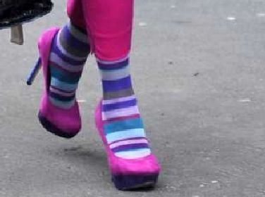 Un look che non passa inosservato, soprattutto se sfoggiato nella grigia Milano. E' quello di Simona Ventura che a un capri fuxia ha abbinato delle scarpe con plateau dello stesso colore. Giochi di geometrie per calze a righe multicolor (dal viola all'azzurro, passando per il verde e il fuxia) e un maglioncino a “V” a rombi beige, panna e viola. Un abbinamento estroso ma di grande classe. Sorridente saluta i paparazzi che la seguono fino al Nobu bar in centro a Milano dove mangia sushi con un'amica prima di essere raggiunta dal compagno Gian Gerolamo Carraro.