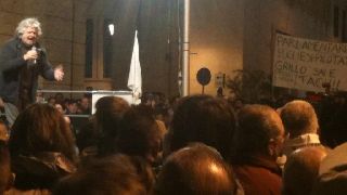 Diecimila persone a Lecce per la tappa dello Tsunami Tour del Movimento 5 Stelle. Tra questi anche un gruppo di contestatori che ha esposto uno striscione contro il comico genovese: "Parlamentarie pugliesi pilotate, Grillo sai e taci".