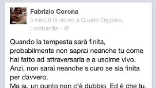 Un messaggio presumibilmente attribuibile a Fabrizio Corona, il fotografo dei vip latitante dopo essersi sottratto a un provvedimento d'arresto a seguito di una sentenza di condanna, è stato postato un'ora fa su Facebook, sul diario del suo profilo ufficiale. Secondo il sistema di localizzazione del social network e stato inviato da un telefono cellulare circa un'ora fa da Quarto Oggiaro, un quartiere nella periferia nord della città. Questo però non significa che sia stato personalmente lui ad inviarlo. "Quando la tempesta sarà finita, probabilmente non saprai neanche tu come hai fatto ad attraversarla e a uscirne vivo. Anzi, non sarai neanche sicuro se sia finita per davvero. Ma su un punto non c'è dubbio. Ed è che tu, uscito da quel vento, non sarai lo stesso che vi è entrato", ha scritto l'ex re dei paparazzi. Si tratta di una citazione di un autore contemporaneo giapponese, Haruki Murakami, saggista e traduttore, con un grande seguito sui media, che ha scritto, tra gli altri, un volume dal titolo "Kafka sulla spiaggia", da cui è tratta la frase.