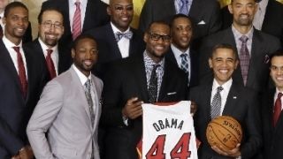 I campioni Nba dei Miami Heat si sono presentati alla Casa Bianca su invito del presidente Barack Obama. La squadra della Florida ha rispettato una tradizione che vuole i vincitori dell'anello in visita al primo cittadino americano. LeBron James e compagni hanno regalato a Obama una canotta con il numero 44 e il nome inciso sulle spalle