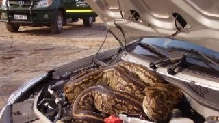 Disavventura per una coppia di turisti che, durante un safari al Kruger National Park in Sudafrica, hanno avuto un incontro ravvicinato con un pitone. Il serpente, lungo oltre 4 metri, ha deciso di nascondersi nel vano motore della loro automobile. Marlene, 38 anni, e Leon, 51 anni, avevano visto il pitone al lato della strada tra l'erba alta, ma a un certo punto era sparito. Solo dopo alcuni chilometri di viaggio hanno capito dove si era andato a cacciare.