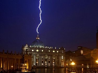 Proprio nel giorno delle dimissioni di Benedetto XVI, un fotografo Ansa è riuscito a catturare uno scatto carico di simbologia. Un fulmine si abbatte sulla vetta della cupola di San Pietro, che in cielo non approvino la decisione di Joseph Ratzinger?