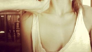 "Quasi pronta per la serata" cinguetta Elisabetta Canalis in un autoscatto che la ritrae dal parrucchiere per un'aggiustatina ai capelli, canotta con scollo azzardatamente profondo e capezzolo in fuoriuscita.