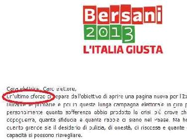 Bersani sbaglia l'apostrofo nella mail agli elettori