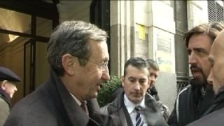 Valerio Staffelli consegna il Tapiro d'oro a Gianfranco Fini. Il leader di Fli, dopo trent'anni da deputato, è stato infatti escluso dal parlamento.