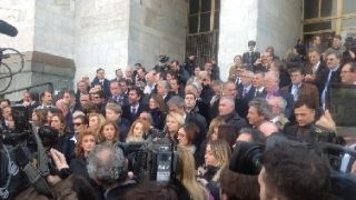I parlamentari del Pdl sono entrati a Palazzo di giustizia di Milano per protestare dopo la nuova condanna a Silvio Berlusconi e il tentativo dei pm di respingere le istanze di legittimo impedimento. "Per una volta - ha detto l'ex ministro Gelmini - disobbediamo al presidente". Intanto il segretario Angelino Alfano ha anticipato che il Pdl sta valutando la possibilità di disertare la prima riunione del Parlamento.