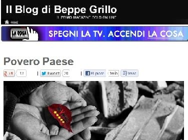 "Povero Paese dove un presidente della Repubblica, invece di andare in prima serata in televisione a condannare un atto eversivo di portata enorme come la triste sfilata di parlamentari negli uffici giudiziari, riceve Alfano (ex ministro della Giustizia...) al Quirinale il giorno dopo". Così scrive Beppe Grillo sul suo blog, riferendosi all'incontro tra il Capo dello Stato e i vertici del Pdl. Il leader del M5S critica poi quanto sta avvenendo tra i partiti, in particolare una discussione centrata solo sulle alleanze invece che sui problemi dell'Italia. "Povero Paese - si legge nel post di Grillo - in ostaggio degli interessi di tanti, di troppi, ma non del popolo italiano. Ora siamo a una svolta. Gli italiani lo hanno capito".