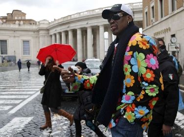 Oggi in Vaticano è arrivato anche un fedele d'eccezione: l'ex campione dei Chicago Bulls Dennis Rodman, giunto alla Santa Sede per supportare il suo cardinale preferito: Peter Turkson. L'ex cestista vorrebbe che al Conclave in corso fosse il ghanese a venire consacrato nuovo Papa. "Sarà molto difficile - ha detto Rodman ad Agipronews - ma un Papa nero forse sarebbe più vicino ai problemi del mondo". Ultimamente sono circolate voci su un ipotetico impegno politico di Rodman, tornato da poco dalla Corea del Nord dove ha incontrato il leader Kim Jong-un. Ma lui nega: "Sono coinvolto nel sociale e basta. Credo nella pace e in un mondo dove nessuno muore di fame. Il mio messaggio? Questo".