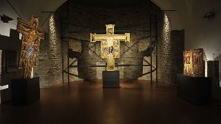 © Ufficio stampa|PITTORE TOSCANO (Metà del secolo XII) Crocifisso con storie della Passione di Cristo. Nelle tabelle laterali, i Dolenti e una Pia donna Tempera su tavola, cm 276 x 231,3 Inventario 1890 n. 432 - Foto di Claudio GiustiLa provenienza di questo capolavoro affascinante della pittura italiana delle origini è ignota. L’opera è indicata per la prima volta nell’inventario del 1881. La croce fu esposta alla Galleria dell’Accademia dal 1919 al 1948, quando rientrò agli Uffizi. Gli studiosi hanno sottolineato in maniera pressochè unanime la rilevanza assoluta del dipinto nel panorama della pittura italiana dell’epoca, ricco di rimandi alle situazioni più stimolanti e progressive riscontrabili nell’ambito del bacino mediterraneo. Tuttavia, i confronti stilistici più stringenti si possono reperire nell’ambito della cultura pisana del XII secolo e, in particolare, con le croci dipinte della chiesa di San Paolo all’Orto (oggi al Museo Nazionale di San Matteo a Pisa) e soprattutto nella bella croce della chiesa di San Frediano, la cui redazione originale è probabilmente coeva al dipinto degli Uffizi. La qualità dell’esecuzione è altissima in ogni parte dell’opera, specialmente per quanto riguarda la raffinatissima stesura pittorica, nonché per la forte carica espressiva che il maestro riesce a conferire ai personaggi che animano le scene del tabellone. Quest’ultimo aspetto in particolare sollecita un confronto di grande interesse con i personaggi dipinti da una folta schiera di pittori musulmani verso la metà del secolo XII sul soffitto ligneo della Cappella Palatina di Palermo su commissione del re Ruggero II.