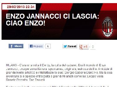 Il Milan piange Jannacci: "Ciao Enzo!"