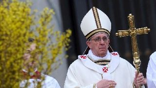 Papa Francesco è arrivato in Piazza San Pietro per la messa del giorno di Pasqua. Il Santo Padre, vestito con semplici paramenti bianchi, è uscito sul sagrato di San Pietro in processione dalla basilica vaticana per dare inizio alla liturgia, di cui il Papa è l'unico celebrante. Si è aperta con il rito del "Resurrexit", che prevede l'apertura dell'immagine del Risorto.