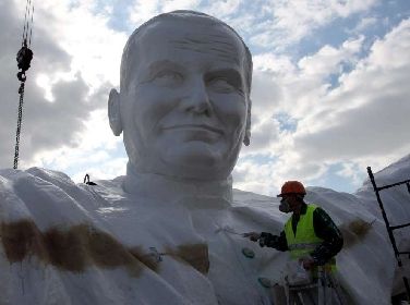 Ultimi preparativi per la più grande statua al mondo di Papa Giovanni Paolo II, nel Miniature Park, a Czestocowa, in Polonia. Il monumento di 14 metri di altezza sarà inaugurato sabato 13 aprile.