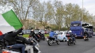 Grande entusiasmo dei tifosi della Lazio, che non potendo entrare all'Olimpico per il match col Fenerbahce (campo squalificato) hanno deciso di scortare il pullman della squadra da Formello allo stadio.