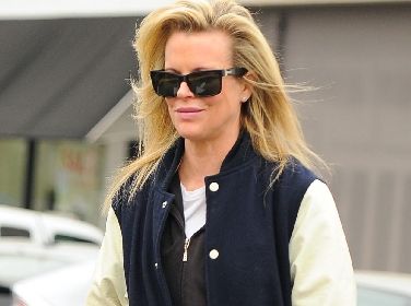 Lontano dai riflettori, Kim Basinger sembra essersi rilassata un po' troppo. Se la genetica non la tradisce ancora, lei seppellisce il suo corpo sotto strati di vestiario. In giro coi sacchetti della spesa, indossa una felpa da giocatore di football bianca e blu sopra un'altra felpa nera e una t-shirt slargata. A coprire le sue gambe da fenicottero, enormi jeans di un grigio slavato. Completano l'outfit, i sandali bordeaux con zeppa.