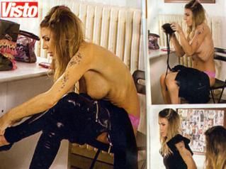 Fa scivolare i pantaloni di pelle nera, sopra è già tutta nuda, décolleté prosperoso ben in vista, slip rosa di pizzo a sottolineare le forme perfette del suo lato B. Riecco Guendalina Canessa mentre inscena uno strip bollente nel suo camerino...