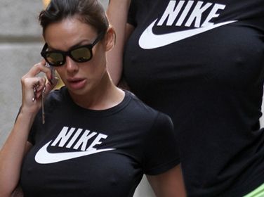 Senza reggiseno e con i capezzoli ben in evidenza sotto la canotta nera attillatissima. Riecco la solita Nicole Minetti, incontenibile, esuberante e con un seno che sfida ogni legge di gravità. Look fin troppo sportivo per una passeggiata in via della Spiga. Collant neri e mini shorts verdi da corsa, con un paio di sneakers gialle fluo. L'ex consigliera non bada all'immagine.
