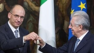 Passaggio di consegne fra Mario Monti ed Enrico Letta attraverso la tradizionale cerimonia della consegna della campanella, con cui il premier apre e chiude i lavori del Consiglio dei ministri. Poco prima del rito, Monti e Letta si sono incontrati per circa mezz'ora. Dopo che Letta ha ricevuto la campanella da Monti e l'ha fatta suonare, si è abbracciato con il suo predecessore. Analogo saluto anche tra i due sottosegretari alla presidenza, l'uscente Antonio Catricalà e l'entrante Filippo Patroni Griffi.