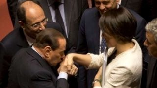 Strette di mano, sorrisi e galanti baciamani alle colleghe senatrici e ministri. E' sempre lui, Silvio Berlusconi, il personaggio che attira di più l'attenzione dei fotografi appostati a Palazzo Madama.