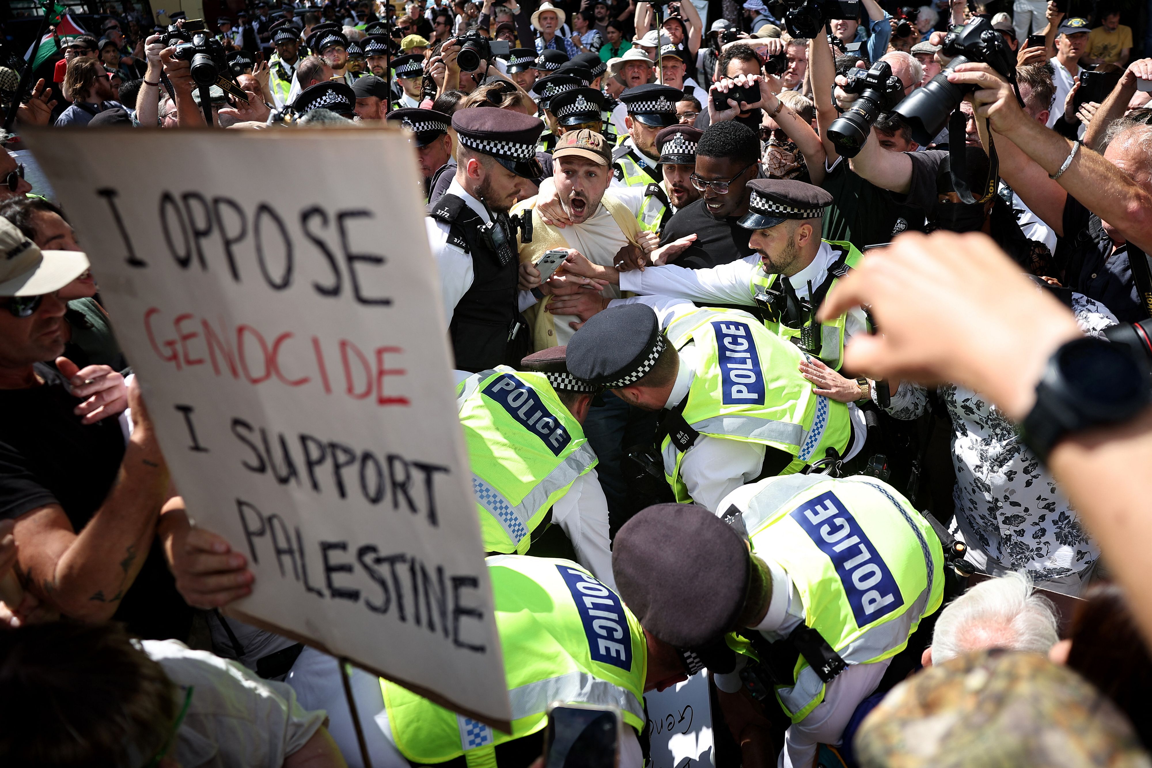 Sono almeno 200 le persone arrestate dalla polizia britannica per essersi riunite a Londra, di fronte a Westminster, in segno di protesta contro la recente, contestatissima, decisione del governo laburista di Keir Starmer d'inserire nella lista nera delle "organizzazioni terroristiche" Palestine Action: gruppo pro-Pal noto per azioni di disobbedienza civile e per imbrattato aerei militari in un recente blitz in una base inglese, ma mai coinvolta in alcun atto concreto di violenza contro le persone. I manifestanti hanno esibito cartelli con su scritto "Io mi oppongo al genocidio (imputato a Israele a Gaza, ndr), io sostegno Palestine Action". Una dichiarazione di solidarietà sufficiente a far scattare l'accusa di violanzione della legge britannica sul terrorismo (Terrorism Act), per l'appoggio dichiarato a una sigla messa al bando. Scotland Yard si è impegnata a sottoporre a fermo e a incriminare tutti i partecipanti all'iniziativa.