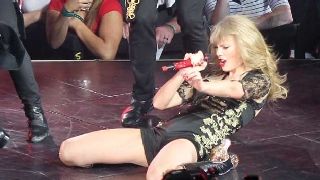 Bella e conturbante, Taylor Swift sgambetta con un look provocante per la data di Washington del "Red Tour". Sul palco del Verizon Center, la cantante country indossa un body di raso nero scollato con dettagli in pizzo e brillantini e stivali con stiletto in pelle nera. Una vera performer che incanta il pubblico con una coreografia scatenata circondata da ballerini con le maschere in volto.