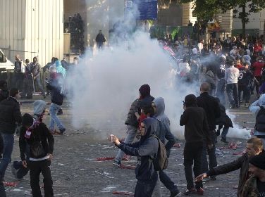Tafferugli e incidenti con lancio di lacrimogeni da parte della polizia sono avvenuti nel pomeriggio al Trocadero, dove alcune migliaia di tifosi - circa 10.000 - aspettavano il pullman dei giocatori del Paris Saint-Germain per la festa dopo la vittoria in campionato. Alcune decine di tifosi hanno sfondato le recinzioni e superato le transenne sistemate dalla polizia, provocando l'intervento dei celerini e il lancio di lacrimogeni. Alcuni sono riusciti ad arrampicarsi su un'impalcatura il cui accesso era stato severamente vietato e sono stati fatti scendere. Il sindaco di Parigi, Bertrand Delanoe, intervenuto per la consegna del trofeo ai giocatori, ha condannato gli incidenti. Infine il Paris Saint-Germain e il partner commerciale Nike hanno annullato "per motivi di sicurezza" la minicrociera sulla Senna durante la quale, questa sera, i giocatori avrebbero dovuto innalzare il trofeo di campioni di Francia per festeggiare con i loro tifosi