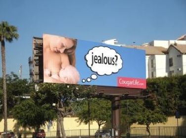 A qualcuno piace avere un toy-boy e ad altri piace essere un toy-boy. Su questa certezza si basa CougarLife, sito per incontri statunitense, specializzato in appuntamenti fra giovani uomini e signore mature. L'esemplificazione somma della questione è stata scelta per un cartellone pubblicitario apparso nel centro di Los Angeles, sul Sunset Boulevard, dove una donna allatta un bambino. "Geloso?", si legge nella didascalia all'immagine.