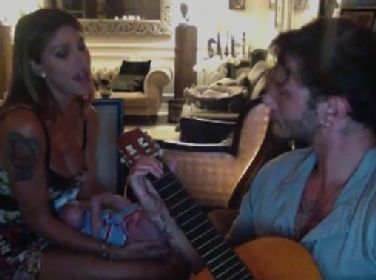 Una splendida donna, solare, abbronzata, in miniabito inguinale e scollatura provocante e per di più intonata, che canta una bella ninna nanna al suo baby mentre il compagno suona la chitarra. Sembra una scenetta bucolica, romantica, da film. Invece è quel che avviene in casa Rodriguez-De Martino, dove la sexy Belen improvvisa una canzoncina per allietare il suo piccolo Santiago. Lei lo tiene sulle sue gambe e si muove sinuosa, il fidanzato l'accompagna con la musica.