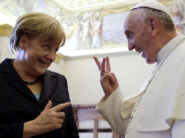 La tutela dei diritti umani, le persecuzioni verso i cristiani, la libertà religiosa, la collaborazione internazionale per la pace. Sono alcuni dei temi toccati nel colloquio, durato 45 minuti, in Vaticano tra papa Francesco e Angela Merkel. Riferisce la sala stampa che si è parlato anche dell'Europa "quale comunità di valori e la sua responsabilità nel mondo", oltrea alll'impegno per uno sviluppo "fondato sulla dignità della persona e ispirato ai principi della sussidiarietà e della solidarietà".